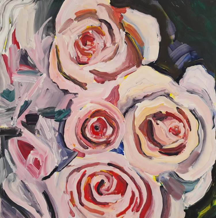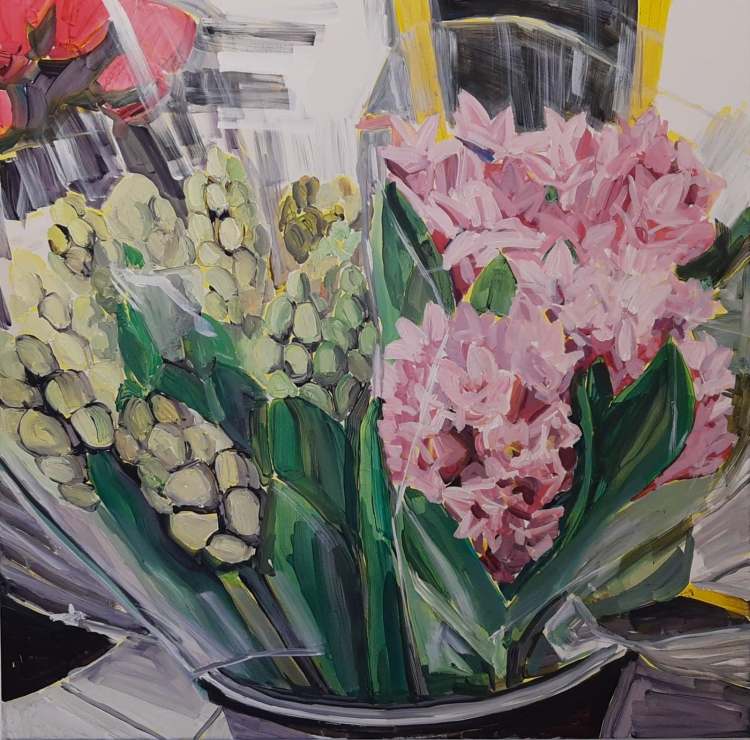 “Still Life with Flowers, Irma, Kbh NV. 2”. Acrylic on canvas. 40 x 40 cm. 2020“Still Life with Flowers, Irma, Kbh NV. 4”. Acrylic on canvas. 40 x 40 cm. 2020“Still Life with Flowers, Irma, Kbh NV. 5”. Acrylic on canvas. 40 x 40 cm. 2020“Still Life with Tulips”. Acrylic on canvas. Ø39 cm. 2022.“Still Life with Flowers, Irma, Kbh NV. 6”. Acrylic on canvas. 80 x 80 cm. 2020