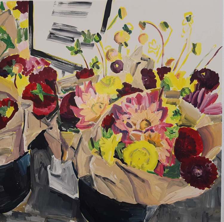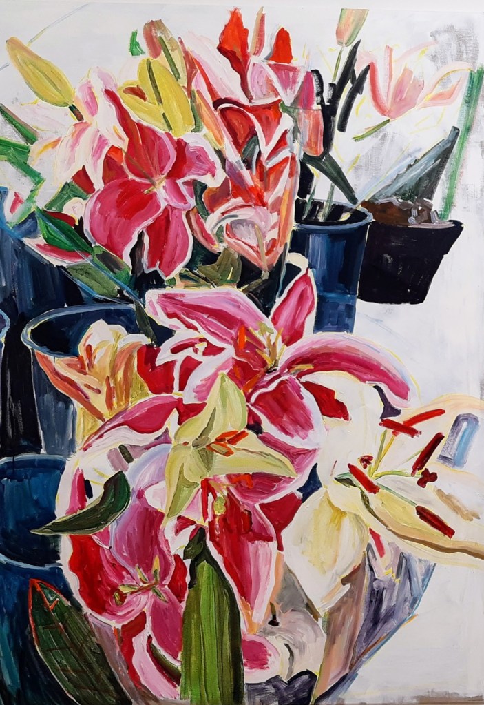 “Still Life with Flowers”. Acrylic on canvas. 40 x 40 cm. 2021“Still Life with Flowers, Føtex, Birkerød. 1 “. Acrylic on canvas. 95 x 105 cm. 2019“Flowers more Flowers, 1”. Acrylic on canvas. 180 x 200 cm. 2020“Flowers more Flowers, 4”. Brugsen, Tranum. Acrylic on canvas. 170 x 190 cm. 2020“Flowers more Flowers, 3” Acrylic on canvas. 180 x 200 cm. 2020Flowers moore Flowers, 5. Brugsen, Tranum.